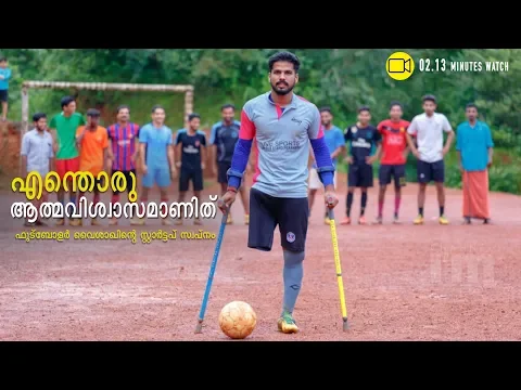 കാണികളുടെ ആരവങ്ങള്ക്കിടെ മൈതാനങ്ങളില് എത്രയോ തവണ ഫുട്ബോളിനെ ചുംബിച്ച ചടുലമായ കാലുകളിലൊന്ന് അപകടത്തില് നഷ്ടമായപ്പോഴും ആത്മവിശ്വാസം ഇരട്ടിക്കുക മാത്രം ചെയ്ത അത്ഭുത താരം. ഇന്ത്യന് ആംപ്യൂട്ടി ഫുട്ബോള് ക്യാപ്റ്റന് പേരാമ്പ്രക്കാരന് വൈശാഖ്. കേരളത്തില് ഫുട്ബോള് ജ്വരം കയറിയ യുവാക്കള്ക്ക് ശാസ്ത്രീയ പരിശീലനം നല്കുന്ന അക്കാഡമി എന്നതാണ് വൈശാഖിന്റെ ലക്ഷ്യം. കഴിയുന്നത്ര കാലം ഫുട്ബോള് കളിക്കാന് കഴിയണമെന്ന സ്വപ്നത്തിനൊപ്പം ഫുട്ബോളിന് വേണ്ടി എന്തെങ്കിലുമൊക്കെ ചെയ്യണമെന്നും വൈശാഖ് പറയുന്നു. മികച്ച കളിക്കാരായിട്ടും ഫുട്ബോളില് അവസരങ്ങള് കിട്ടാതെ പോകുന്ന നിരവധി പേര് നാട്ടിന്പുറങ്ങളിലുണ്ടാകാറുണ്ട്. അങ്ങനെയുള്ളവര്ക്ക് വേണ്ടി ഒരു അക്കാഡമി തുടങ്ങണമെന്നാണ് വൈശാഖിന്റെ സ്റ്റാര്ട്ടപ്പ് സ്വപ്നം.