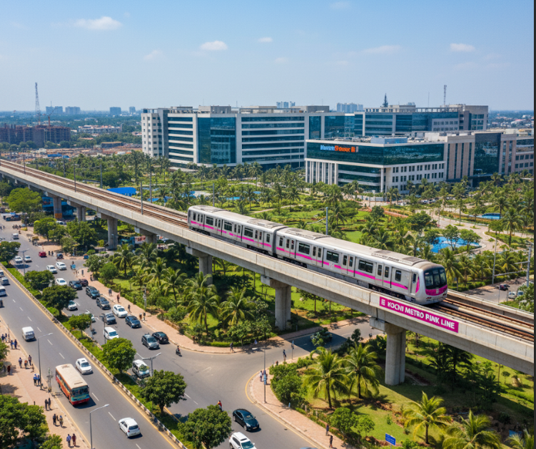 Kochi Metro Phase 2 extension to Kizhakkambalam’s Infopark Phase 3 campus under discussion. The Pink Line aims for 2026 completion.